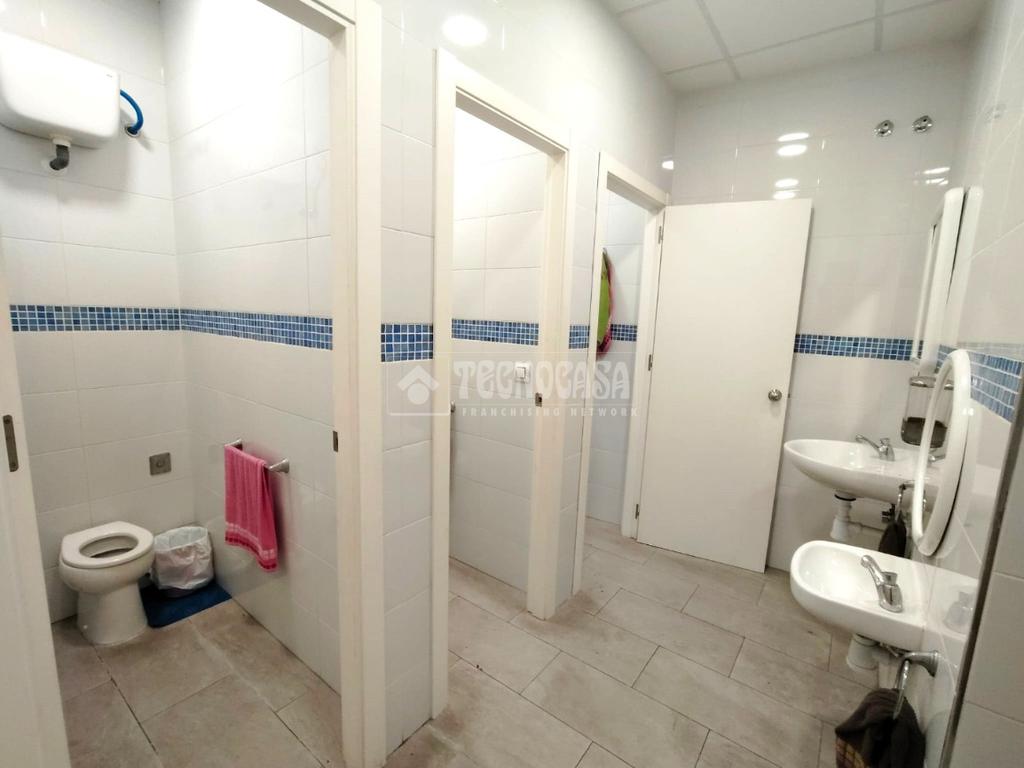 El local cuenta con puerta automatica deslizantes con motor y puerta de acceso peatonal, espacio diafano con amplia funcionalidad y con baños adaptados y separados para ambos sexos. Cuenta con 3 baños independientes; baño para minusvalidos según normativa, baño para mujeres con 2 habitaculos y una ducha y otro baño para hombre con otros 2 habitacuñlos y otra ducha.